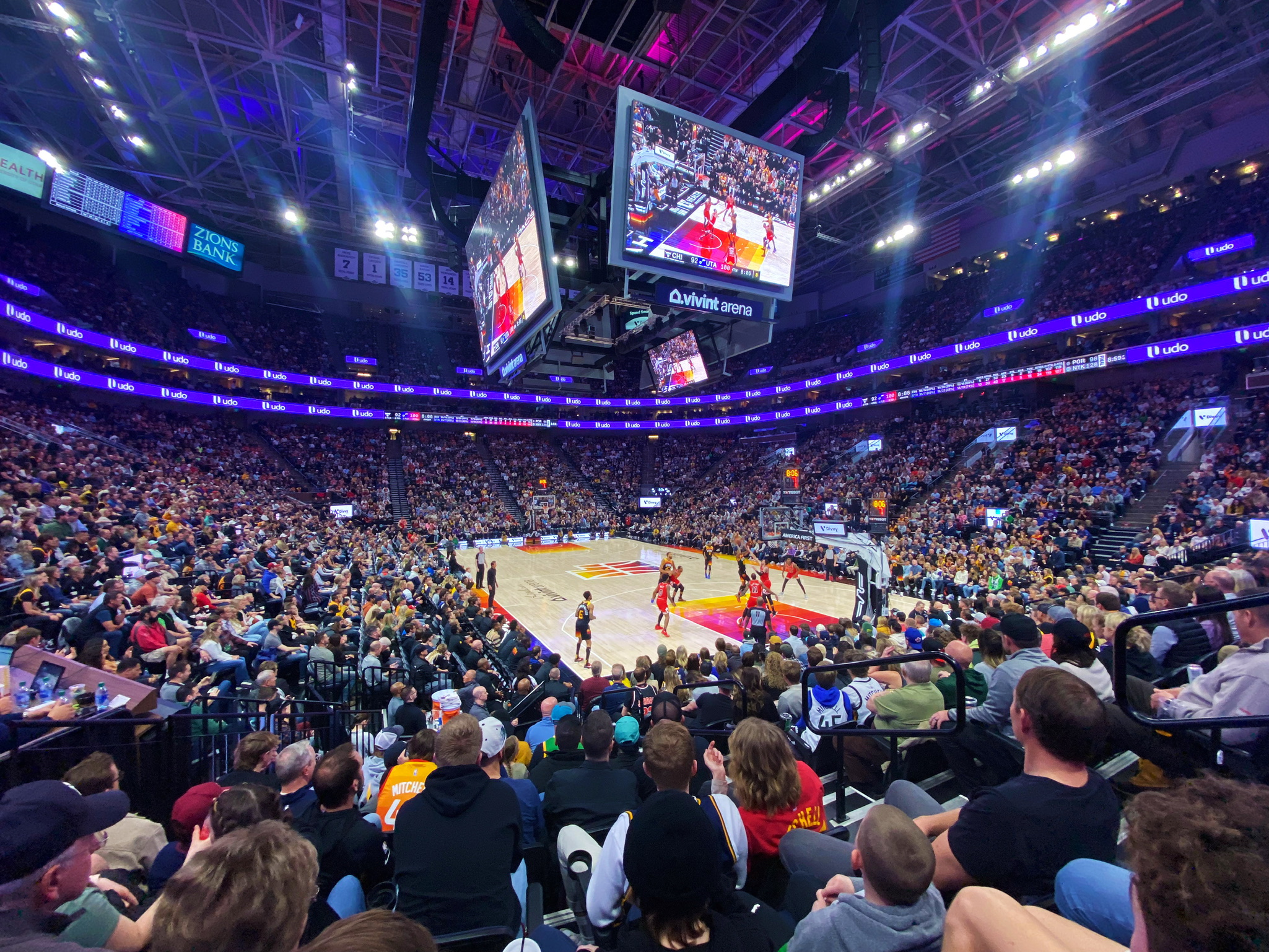 We had great seats close to the court with a view of the Jazz bench, giving me a chance to spy on all the players and try to make out what they were talking about. It felt surreal to be sitting in the Vivint Arena surrounded by screaming fans and seeing my favourite players in real life, and I had to pinch myself a couple of times to be sure I wasn’t dreaming.