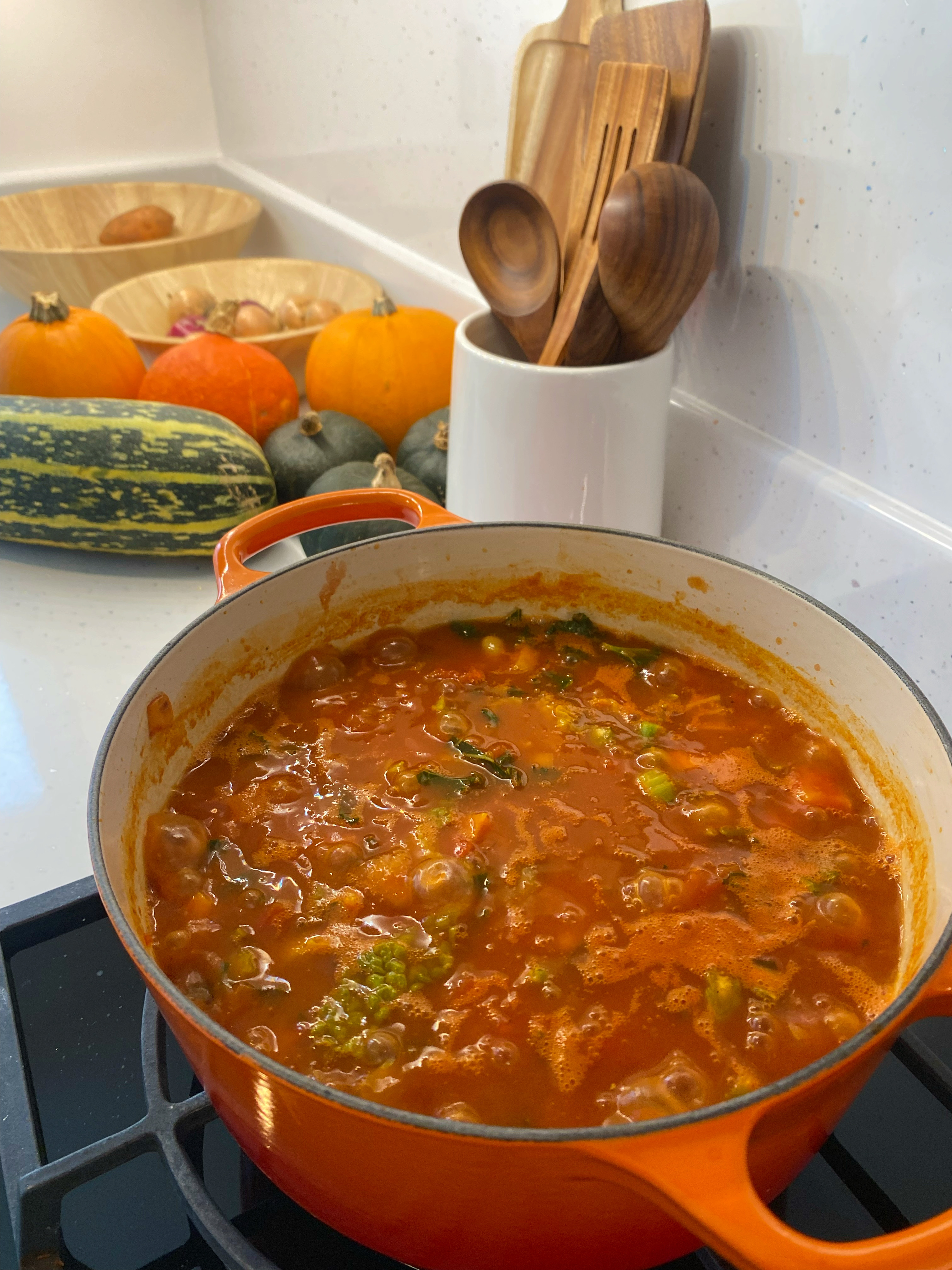 I’ve been making big batches of autumn harvest soup lately, which brightens up even the gloomiest October day.