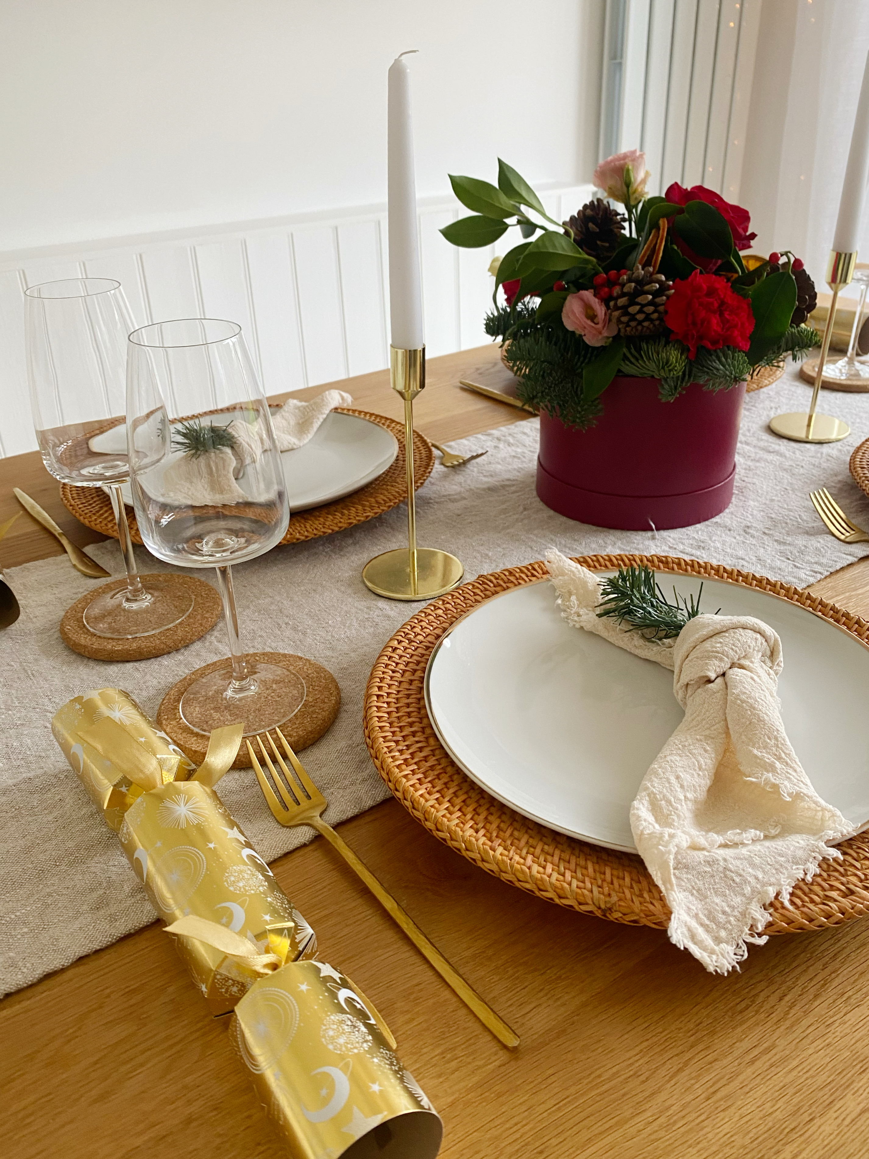 I have to admit, I also wanted an excuse to show off my beautiful Christmas dining table – doesn’t it look wonderful? The flowers were a gift from my parents, and they made the perfect centrepiece.
