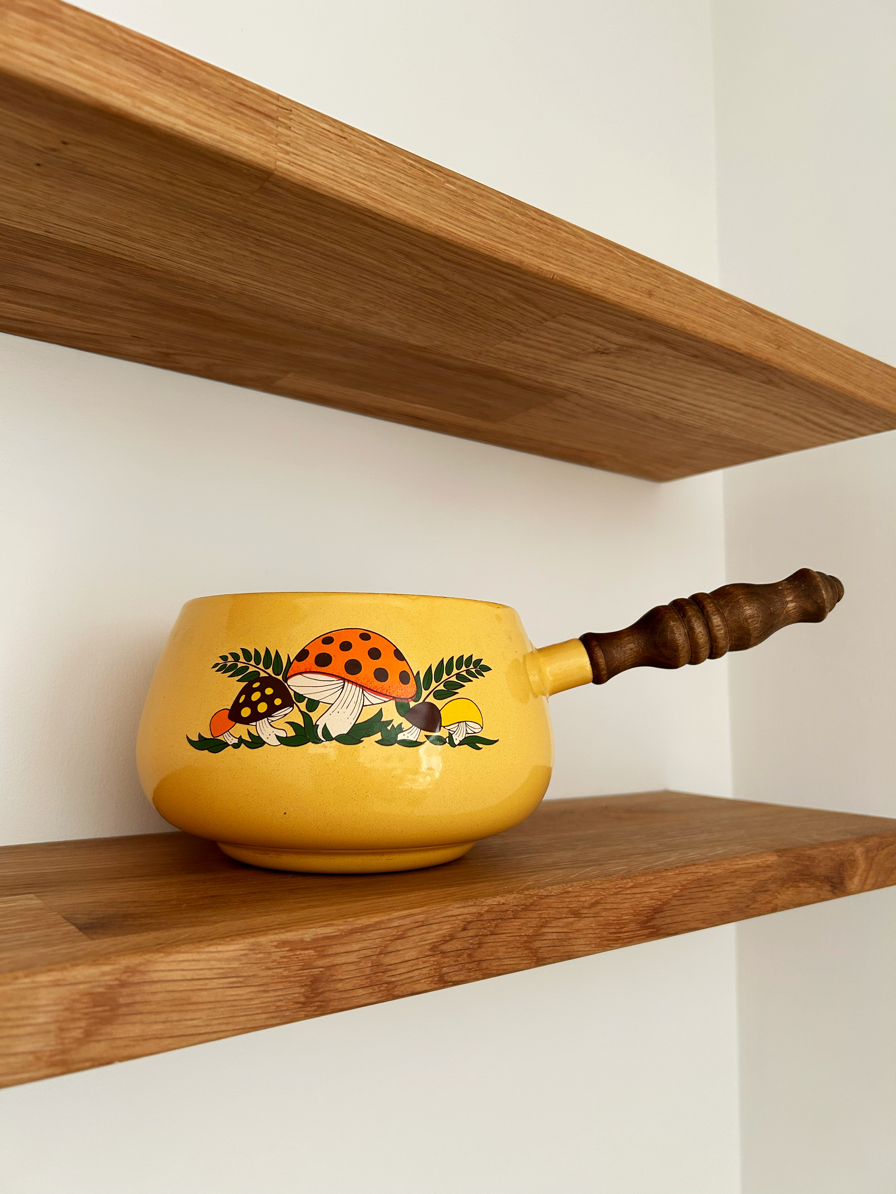 I’ve read some horror stories about vintage kitchenware, so I don’t plan to cook with it. I think I’m going to turn it into a plant pot, or maybe even try to grow some actual mushrooms in it.