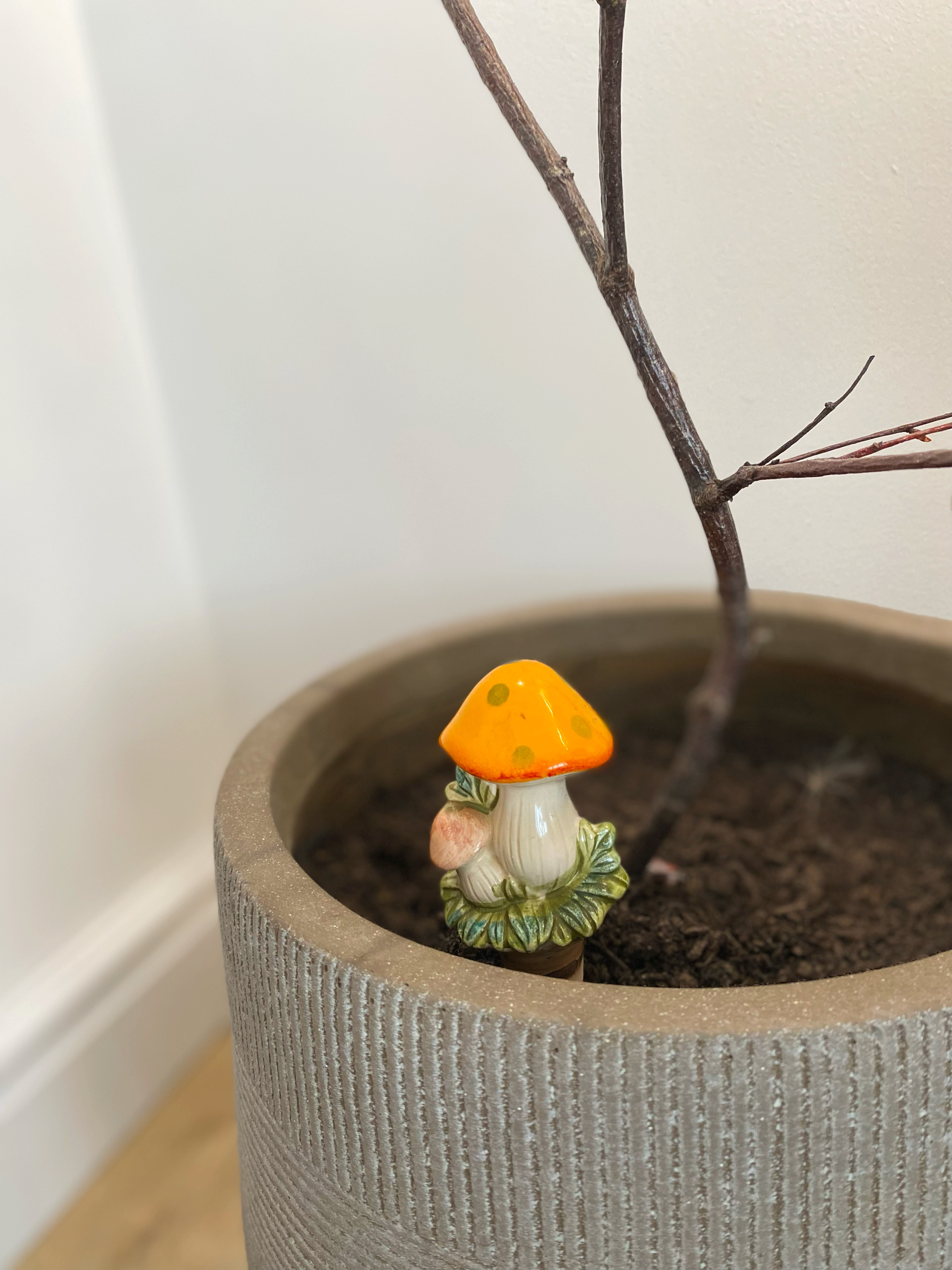 This little mushroom is now one of my favourite autumn decorations, and I love seeing it peeking out of my plant pot throughout the season.