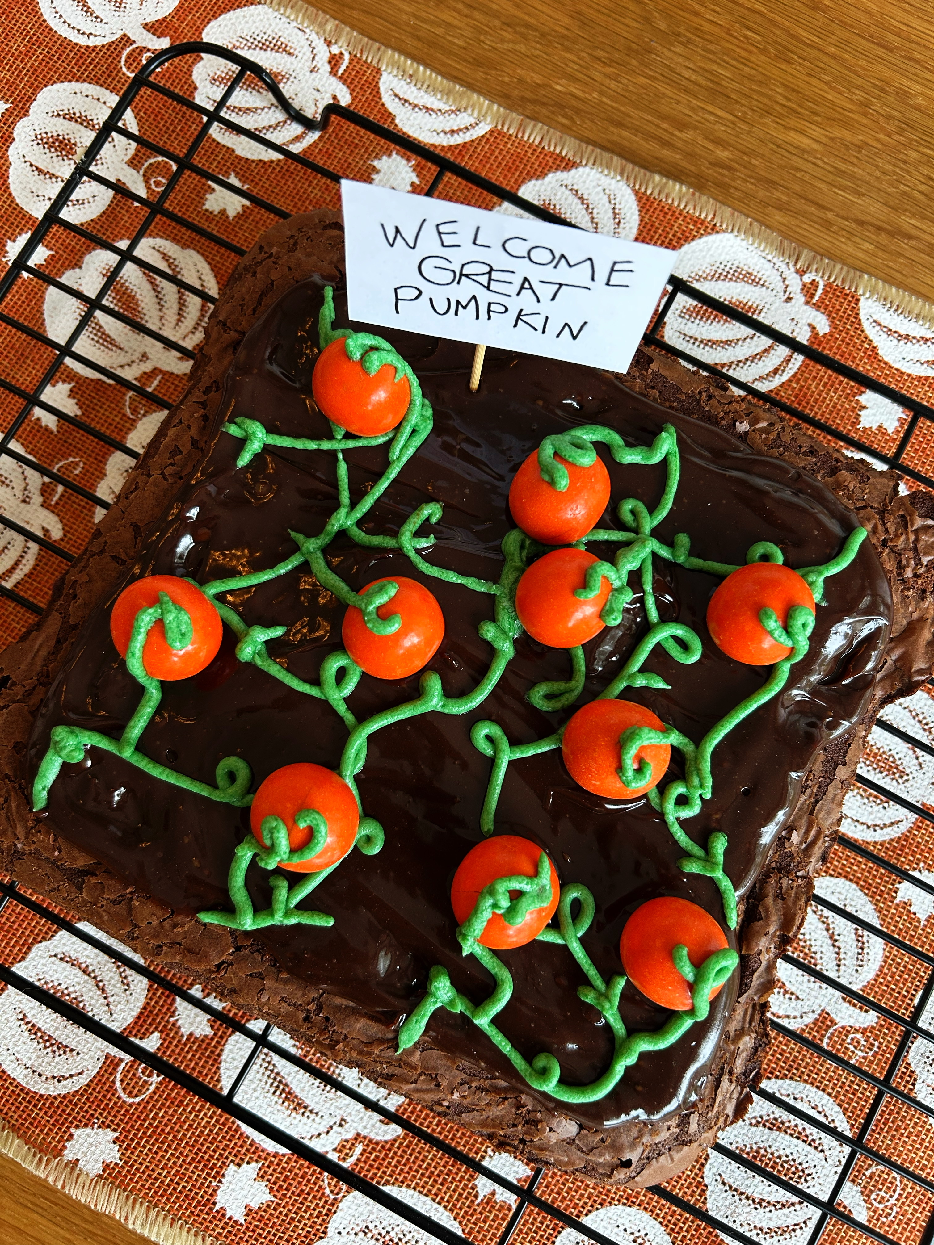 I’ve been wanting to make these Charlie Brown pumpkin patch brownies for years. This October, I made my chocolate-y dreams come true with a happy Halloween morning spent baking and decorating.